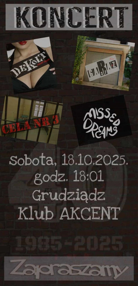 Wystąpią: Missed Dreams, Garaż 37, Dekolt i Cela Nr 3