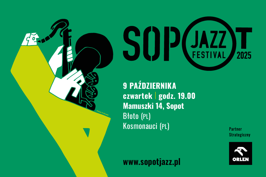 Już 9 października rusza jesienna odsłona Sopot Jazz Festival 2025. Na początek dwa koncerty na scenie Mamuszki 14, na której pojawią się Kosmonauci oraz Błoto. KOSMONAUCI W muzyce prezentują te emocje i wartości, które cechują niepokornych przedstawicieli młodego pokolenia; na czele z niespożytą energią i bezkompromisowością. Pełnymi garściami czerpią także z hip-hopu, drum&bassu oraz improwizacji. Formacja z Bielska-Białej odważnie balansuje pomiędzy emocjonalnymi melodiami a polirytmicznymi strukturami, dzięki czemu nie tylko wypracowała unikatowy styl, ale też stała się jedną z ciekawszych nazw na współczesnej scenie polskiego jazzu. BŁOTO Błoto to skład, który tworzą muzycy związani z wrocławskim EABS. W Sopocie usłyszymy przede wszystkim...