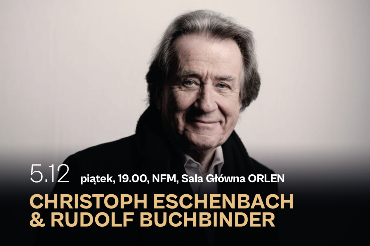 Dyrektor artystyczny NFM Filharmonii Wrocławskiej, maestro Christoph Eschenbach, jest postacią doskonale znaną wrocławskiej publiczności. Tym razem pojawi się w towarzystwie austriackiego pianisty Rudolfa Buchbindera. Ten drugi cieszy się międzynarodową sławą, koncertuje już od przeszło półwiecza, a jego repertuar jest niezwykle obszerny – obejmuje dzieła od baroku do współczesności. Specjalne miejsce zajmuje w nim muzyka Ludwiga van Beethovena. To jej wykonania i płyty przyniosły artyście największe uznanie. W NFM Buchbinder przedstawi swoją interpretację ostatniego koncertu fortepianowego tego kompozytora, natomiast Eschenbach poprowadzi jeszcze wczesną symfonię ostatniego z wiedeńskich klasyków.
