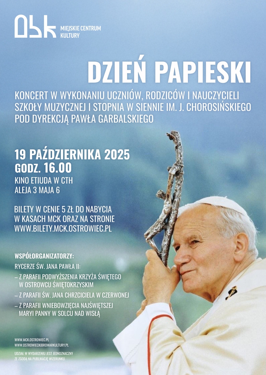 Serdecznie zapraszamy na wyjątkowe wydarzenie muzyczne, przygotowane z okazji Dnia Papieskiego.