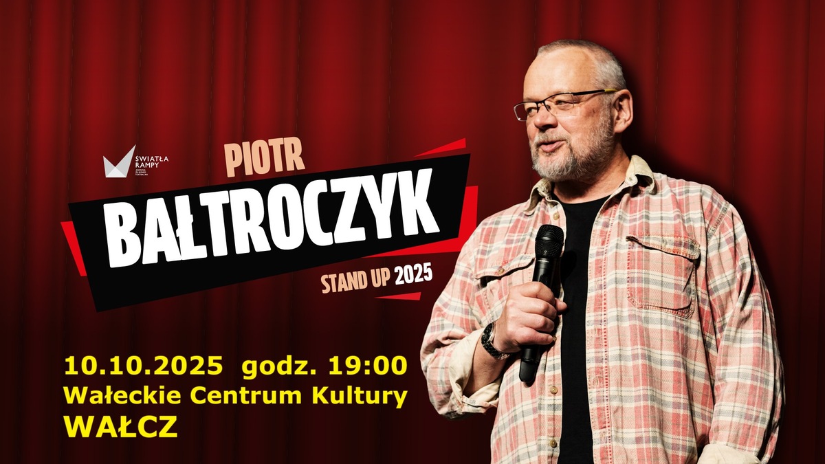 W dniu 10 października 2025 r. (piątek) o godz. 19:00 w Wałeckim Centrum Kultury w Wałczu (Plac Zesłańców Sybiru 3) wystąpi Piotr Bałtroczyk. Jest on znaną, cenioną i lubianą osobowością życia publicznego w Polsce. Absolwent Wydziału Dziennikarstwa i Nauk Politycznych Uniwersytetu Warszawskiego, dziennikarz, poeta, piosenkarz, konferansjer, satyryk, prezenter telewizyjny i radiowy.