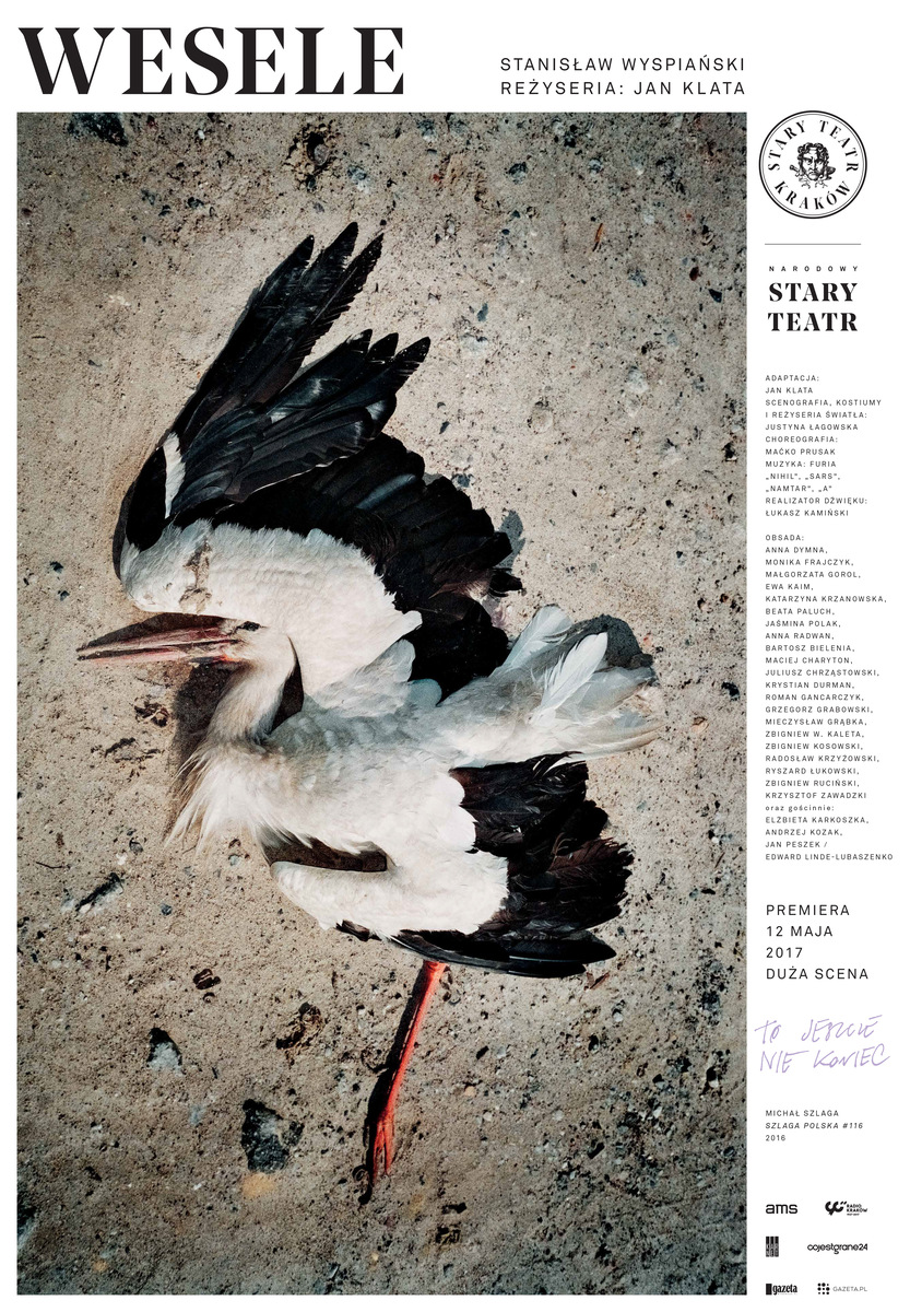 Histeryczny atak śmiechu Czepca i Dziennikarza po słynnych słowach „Co tam Panie, w polityce?”, a zaraz potem zderzenie ze ścianą dźwięków black metalowej Furii, wtórującej tańcowi weselników –tak dynamicznie zaczyna się „Wesele” AD 2017 w reżyserii Jana Klaty. Choć zamiast malowniczej bronowickiej chaty mamy do czynienia z krainą w nieustannej przebudowie, reżyser nie uwspółcześnia dramatu na siłę: zaprojektowane przez Justynę Łagowską rusztowania spowite czarną folią, odrąbany kikut drzewa i pusta kapliczka wyznaczają niepokojącą scenerię, w której spotykają się dwa obce sobie światy. Istniejące osobno – zblazowani, pozbawieni werwy i charyzmy „miastowi” oraz rubaszny „lud”, pełen siły, na oślep szukającej ujścia – jednoczące się tylko w momentach tanecznego transu. Dookoła sceny, na czterech pomnikowych postumentach stoją muzycy z biało-czarnymi twarzami – współczesne chochoły. To w takt ich muzyki rozgrywa się akcja, prowadzona „przez pół drwiąco, przez pół serio”, ale w momentach ekstatycznych układów choreograficznych Maćko Prusaka osiągająca temperaturę wrzenia. Po chwili jednak bohaterowie popadną w kolejny marazm, „bawiąc się jeno snami”, wiecznie czekając na znak.
